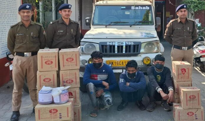 ऋषिकेश । 9 फरवरी को इन्द्रजीत सिंह पुत्र पवित्र सिंह, निवासी 06 प्रगति विहार ने कोतवाली ऋषिकेश में तहरीर दी कि अज्ञात चोरों ने वाहन संख्या यू0के0- 07-सीए-5076 से टापस कैचप की पेटियाँ एंव अन्य सामान चोरी कर लिया गया है। तहरीर के आधार पर कोतवाली ऋषिकेश में मु0अ0स0 70/2025 धारा 303(2) बीएनएस पंजीकृत किया गया। चोरी की घटना का खुलासा व चोरों की गिरफ्तारी के लिए वरिष्ठ पुलिस अधीक्षक देहरादून ने कोतवाली ऋषिकेश में पुलिस टीम का गठन किया। गठित टीम ने मुखबिर की सूचना पर मंगलवार को तीन अभियुक्तों शाहरूख 22 वर्ष पुत्र ताहिर निवासी ग्राव पटनी थाना चिलकाना,जिला सहारनपुर उ0प्र0, हाल पता ग्राम/कस्बा भगवानपुर थाना भगवानपुर जिला हरिद्वार, रउफ 32 वर्ष पुत्र तालिब निवासी ग्राव पटनी उपरोक्त, शाहरूख 33 वर्ष पुत्र ताहिर निवासी ग्राम पटनी उपरोक्त को आईडीपीएल क्षेत्र से चोरी के माल के साथ गिरफ्तार किया है और तथा घटना में प्रयुक्त वाहन को सीज किया। पुलिस टीम में अपर उनि मनोज रावत, हेड कांस्टेबल विनोद कुमार, कांस्टेबल सुमित कुमार, दुष्यन्त कुमार व अनिल पयाल शामिल थे।