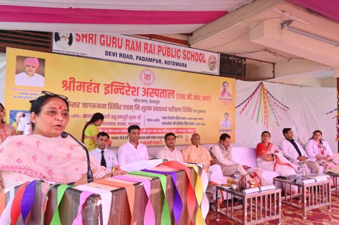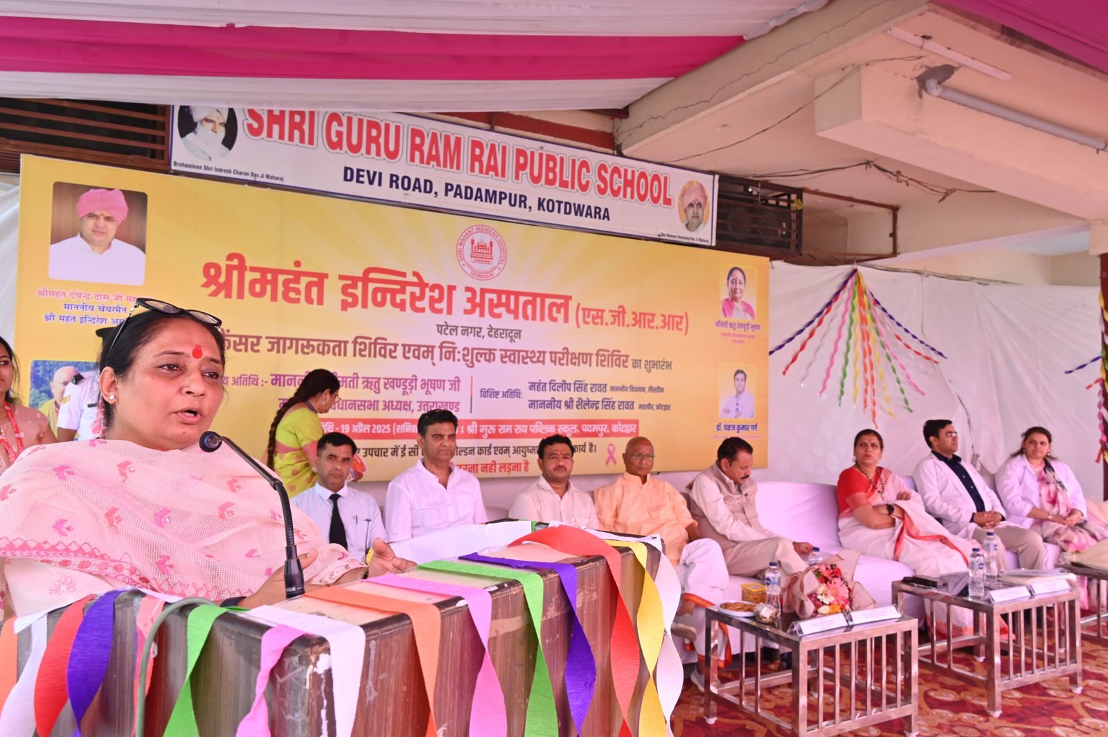 देहरादून । विधानसभा अध्यक्ष ऋतु खण्डूडी भूषण ने कोटद्वार विधानसभा के एस.जी.आर.आर पब्लिक स्कूल के प्रांगण में श्री महंत इंद्रेश अस्पताल द्वारा कैंसर जागरूकता शिविर एवं निशुल्क स्वास्थ्य परीक्षण शिविर में बतौर मुख्य अतिथि दीप प्रज्वलित कर कार्यक्रम का शुभारंभ किया है । अध्यक्ष ऋतु खण्डूडी ने कहा कि इस तरह के जागरूकता के कार्यक्रम हमेशा समाज के लिए हितकारी होते है। उन्होंने बताया जिस उद्देश्य के साथ इंद्रेश हॉस्पिटल की टीम द्वारा यह कार्यक्रम रखा वह सराहनीय है उन्होंने बताया कि हर वर्ष 3600 से ऊपर कैंसर के मरीज गढ़वाल से आते है जिसमें 80 प्रतिशत लोग अपनी जान गवां देते है । उन्होंने बताया यदि समय समय पर कैंसर के प्रति जागरूकता रही तो समय रहते अपना इलाज कराया जा सकता है । उन्होंने बताया कि 9 वर्ष से 12 वर्ष के पूर्व में प्रत्येक बच्चों को यदि एचपीवी का टीकाकरण करा दिया जाए तो छः तरह के कैंसरों को रोका जा सकता है । उन्होंने महंत देवेंद्र दास महाराज और उनकी पूरी टीम का इस पहल के लिए शुक्रिया किया उन्होंने बताया कि यदि समय रहते हमें बीमारी का पता चल जाता है तो उसका उपचार भी किया जा सकता है । उसके लिए हमें समय समय पर ऐसे आयोजन करवाने होंगे ।