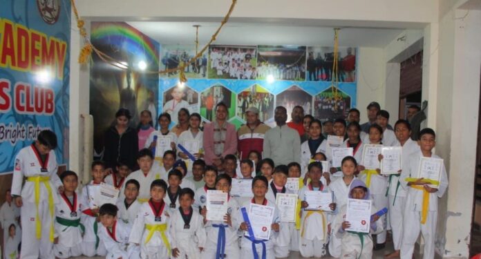 रायवाला । रायवाला कराटे अकादमी में आयोजित बेल्ट परीक्षा के परिणाम आज घोषित किए गए। इस अवसर पर जिला पंचायत सदस्य दिव्या बेलवाल और नॉर्थ इंडियन कराटे के प्रतिनिधि कमल विष्ट ने मुख्य अतिथि के रूप में उपस्थित थे। कार्यक्रम के दौरान, बच्चों को उनकी मेहनत और प्रतिभा के लिए बेल्ट वितरित की गई। दिव्या बेलवाल और कमल विष्ट सर ने बच्चों को प्रोत्साहित किया और उनकी उपलब्धियों की प्रशंसा की। राहवाला कराटे अकादमी के कोच सचिन ने बच्चों को कराटे के माध्यम से अनुशासन, संयम और आत्मविश्वास की भावना को विकसित करने में महत्वपूर्ण भूमिका निभाई है।
