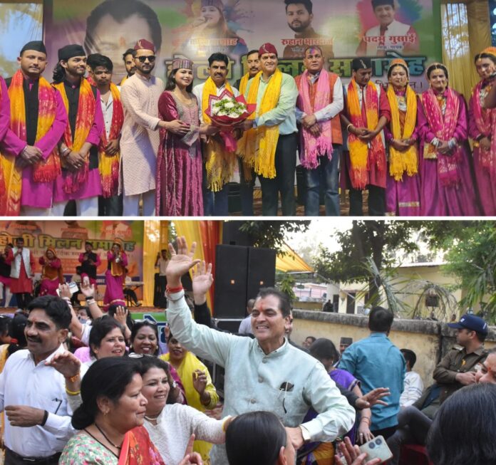 ऋषिकेश ( राव शहजाद ) । होली मिलन समारोह बैराज रोड स्थित कैंप कार्यालय में धूमधाम से मनाया गया है । इस अवसर पर केबिनेट प्रेमचंद अग्रवाल ने कार्यकर्ताओं के साथ फूलों की होली खेली है । इस दौरान पीएम मोदी से सराहना पा चुके लोकगायक रूहान भारद्वाज, करिश्मा शाह, पदम गुंसाई और उनकी टीम ने अपने बैंड के साथ प्रस्तुति दी। इस अवसर सांस्कृतिक कार्यक्रमों की प्रस्तुति के साथ कार्यकर्ताओं ने चटपटे लजीज व्यजनों का लुत्फ उठाया। बुधवार को कैम्प कार्यालय में आयोजित होली मिलन समारोह मंत्री अग्रवाल ने कहा कि होली पवित्रता का त्यौहार है। इस पर्व की महत्वता यह है कि इसमें गले शिकवे भुलाकर एक-दूसरे को गले लगाया जाता है। कहा कि प्रधानमंत्री नरेंद्र मोदी ने आवाहन किया है कि होली पर वोकल फॉर लोकल को अपनाएं।