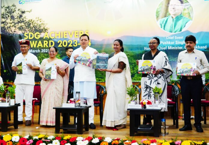 देहरादून (सू0वि0)।   16 एस.डी.जी एचीवर को मुख्यमंत्री ने किया सम्मानित। नैनीताल, देहरादून और उत्तरकाशी जनपद को भी किया गया सम्मानित। अग्रगामी 2.0’ और एसडीजी इंडेक्स उत्तराखण्ड 20232024 का भी सीएम ने किया लोकार्पण। मुख्यमंत्री पुष्कर सिंह धामी ने सोमवार को मुख्यमंत्री आवास स्थित मुख्य सेवक सदन में एस.डी.जी एचीवर अवार्ड समारोह में 3 व्यक्तियों, 09 संस्थानों और 04 औद्योगिक प्रतिष्ठानों को एसडीजी अचीवर अवार्ड से सम्मानित किया। पिछले वर्ष के एसडीजी अवार्ड से पुरस्कृत व्यक्तियों और संस्थानों द्वारा की जा रही अभिनव पहलों की पुस्तक ‘अग्रगामी 2.0’ और एसडीजी इंडेक्स उत्तराखण्ड 20232024 का लोकार्पण भी इस अवसर पर मुख्यमंत्री ने किया। सी०पी०पी०जी०जी० द्वारा वर्ष 202324 के लिए जारी जनपदवार एस०डी०जी० रैंकिंग में नैनीताल जनपद ने प्रथम स्थान, देहरादून दूसरे और उत्तरकाशी तीसरे स्थान पर रहे, तीनों जनपदों के मुख्य विकास अधिकारी को मुख्यमंत्री द्वारा सम्मानित किया गया। मुख्यमंत्री ने विभिन्न क्षेत्रों में नवाचार और उत्कृष्ट कार्य करने वाले लोगों और संस्थाओं को एसडीजी एचीवर्स अवार्ड से सम्मानित होने पर बधाई दी। उन्होंने कहा कि पिछले तीन साल सरकार द्वारा 60 स्वयंसेवी संस्थाओं, व्यक्तियों और सीएसआर के क्षेत्र में उत्कृष्ट कार्य करने वालों को एसडीजी एचीवर्स पुरस्कार से सम्मानित किया है। ये राज्य के विकास के वास्तविक ब्रांड एंबेसडर भी हैं। मुख्यमंत्री ने कहा कि राज्य सरकार वर्ष 2030 तक सतत विकास के लक्ष्यों को प्राप्त करने के लिए पूरी प्रतिबद्धता के साथ कार्य कर रही है। इकोनॉमी और इकोलॉजी के संतुलन के लिए ‘‘त्रिस्तम्भीय एवं नौसूत्रीय नीति“ की शुरुआत की गई है, जो सतत विकास के लक्ष्य को प्राप्त करने की दिशा में एक महत्वपूर्ण कदम होगा। तीन साल पहले एसडीजी इंडिया इंडेक्स में राज्य 9वें स्थान पर था, आज देश में प्रथम स्थान पर है। गरीबी उन्मूलन, खाद्य सुरक्षा, पेयजल एवं स्वच्छता, जन्म के समय लिंगानुपात, स्वच्छ ऊर्जा, शहरी विकास, वित्तीय समावेशन और जलवायु परिवर्तन जैसे क्षेत्रों में राज्य ने महत्वपूर्ण उपलब्धियां हासिल की हैं। उन्होंने कहा कि राज्य सरकार मुख्यमंत्री महिला उद्यमिता प्रोत्साहन योजना, सौर ऊर्जा क्रांति, स्मार्ट सिटी मिशन और मुख्यमंत्री शहरी आजीविका योजना जैसी योजनाओं के माध्यम से इन क्षेत्रों को सशक्त बनाने का कार्य कर रही है। राज्य में जलवायु परिवर्तन, आपदा प्रबंधन, स्वास्थ्य सेवाओं की पहुंच, सतत कृषि और जल संसाधन प्रबंधन जैसी कई चुनौतियां हैं, जहां प्रभावी कार्य करने की आवश्यकता है। उन्होंने कहा कि सतत विकास लक्ष्यों में पहली रैंकिंग को बनाये रखना चुनौती है, सबके सामुहिक प्रयासों स