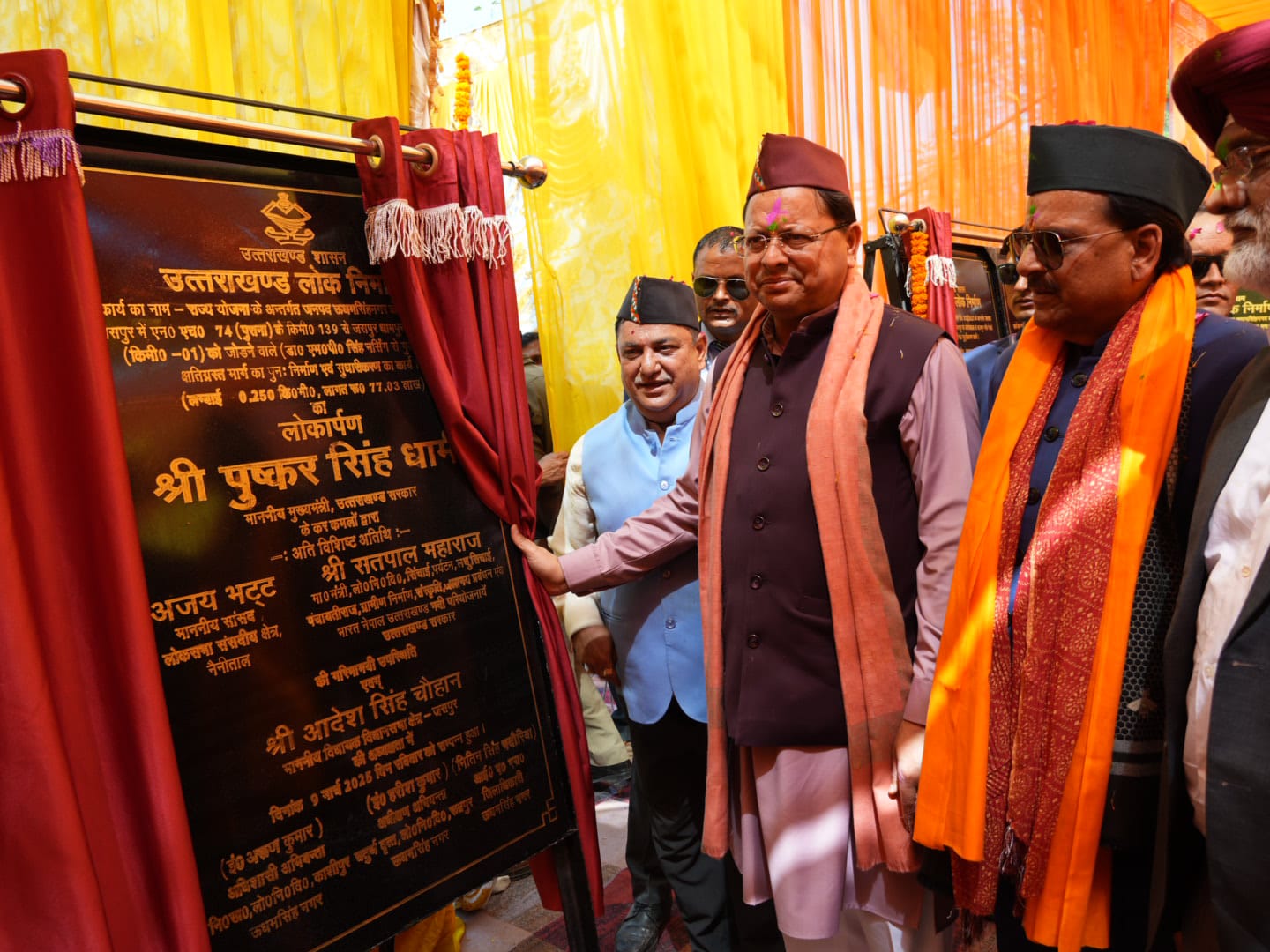 देहरादून (सू0वि0)। मुख्यमंत्री पुष्कर सिंह धामी ने किया 110.56 करोड़ की लागत से 19 विकास कार्यों का शुभारंभ एवं लोकार्पण। मुख्यमंत्री ने किया रोड शो में प्रतिभाग, लोगों ने फूल वर्षा व पुष्प मालाओं से किया स्वागत। राज्य में जनभावनाओं के अनुरूप लाया जा रहा है भू कानून महिलाओं के लिए सुरक्षा कवच है यूसीसी सीएम मुख्यमंत्री श्री पुष्कर सिंह धामी ने रविवार को काशीपुर में भव्य रोड शो कर कार्यक्रम स्थल नगर निगम पहुंचे। रोड शो में मुख्यमंत्री श्री धामी का काशीपुर की जनता, विभिन्न संगठनों, जनप्रतिनिधियों ने पुष्पवर्षा, मालाओं, पुष्पगुच्छ से भव्य स्वागत किया। मुख्यमंत्री श्री पुष्कर सिंह धामी ने काशीपुर नगर निगम में आयोजित अभिनंदन समारोह में 48.61 करोड़ की लागत के 7 विकास कार्यों का शिलान्यास व 61.95 करोड़ की लागत के 12 विकास कार्यों का लोकार्पण किया। इस दौरान कुल 110.56 करोड़ की योजनाओं का शिलान्यास व लोकार्पण किया गया। मुख्यमंत्री ने के.वी.आर अस्पताल से धनौरी तक व बिजनेस इन होटल से परमानन्दपुर लिंक मार्ग तक मार्ग चैड़ीकरण, डिवाइडर निर्माण, वृक्षारोपण, भूमिगत विद्युतिकरण तथा स्ट्रीट लाईट लगाने का कार्य किये जाने। नगर निगम काशीपुर के सम्पूर्ण परिसर में पी.पी.पी. मोड़ में निगम कार्यालय भवन, आवासीय परिसर एवं शॉपिंग काम्पलैक्स का निर्माण कार्य किये जाने। नगर निगम काशीपुर के नवीन निर्मित 17 वार्डों में अवस्थापना सुविधाओं सड़क, नाला/नाली, विद्युत एवं पार्क निर्माण कार्य कराये जाने। राजकीय कन्या जूनियर हाईस्कूल, काशीपुर (छोटी जी०जी०आई०सी०) परिसर नगर निगम को हस्तानान्तरित करते हुये मुख्य बाजार मार्ग चैड़ीकरण एवं पार्किंग युक्त शापिंग काम्पलैक्स का निर्माण कराये जाने। वार्ड नं005 में शहरी विकास विभाग की भूमि पर गौशाला निर्माण कराये जाने। काशीपुर उप जिलाधिकारी कार्यालय के निकट राजकीय भूमि पर सर्किट हाउस बनाये जाने। काशीपुर स्पोटर्स स्टेडियम का आधुनिकीरण एवं पुनर्निर्माण कर नगर निगम काशीपुर द्वारा संचालन किये जाने। मुख्यमंत्री घोषणा संख्या500 का विस्तारीकरण कर गिरीताल सरोवर में साईकिल पैदल ट्रैक निर्माण, नौकायन, सजावटी विद्युती करण, सरोवर के अन्दर स्तम्भ निर्माण आदि कार्य किए जाने। तथा सरोवर का प्रबन्धन नगर निगम, काशीपुर को सौप जाने व राजकीय बालिका इण्टर कालेज का आधुनिकीकरण कर देवभूमि के राज्य स्तरीय मॉड कन्या इण्टरमीडिएट विद्यालय के रूप में विकसित किये जाने की घोषणा की। मुख्यमंत्री श्री पुष्कर सिंह धामी ने कार्यक्रम को सम्बोधित करते हुए काशीपुर में ट्रिपल इंजन की सरकार बनने पर काशीपुर की जनता का हृदय से आभार व्यक्त किया। उन्होंने कहा कि राज्य सरकार द्वारा जनभावनाओं के अनुरूप और 