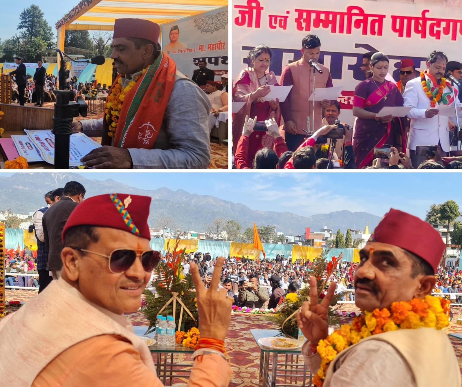 ऋषिकेश ( राव शहजाद ) । डीएम ने मेंयर और सभी 40 पार्षदों को जीत और शपथ लेने पर बधाई और शुभकामनाएं दी है । उन्होंने कहा कि ट्रिपल इंजन की सरकार से शहर का विकास कैसे होता है इसे अब शहर के लोग देखेंगे। शपथ ग्रहण समारोह में उत्तराखंड के लोक गायक मंगलेश डंगवाल भी पहुंचे। उन्होंने नवनिर्वाचित मेयर और पार्षदों को बधाई देने के बाद अपनी टीम के साथ सांस्कृतिक कार्यक्रमों की प्रस्तुति दी। शपथ ग्रहण समारोह में कांग्रेस के प्रत्याशी रहे दीपक जाटव भी पहुंचे। उन्होंने नवनिर्वाचित मेयर और पार्षदों को बधाई देते हुए शहर के विकास के लिए कंधे से कंधा मिलाकर काम करने का दावा किया है ।