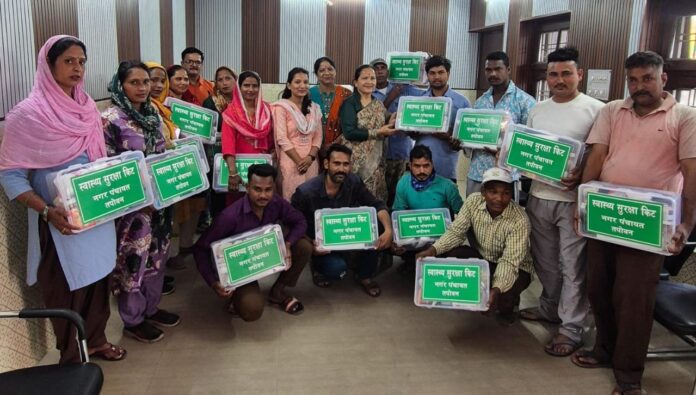 ऋषिकेश ( राव शहजाद ) । नगर पंचायत तपोवन की ओर से पर्यावरण मित्रों को स्वास्थ्य सुरक्षा किट वितरित की गई। इस दौरान 22 कर्मचारियों को स्वास्थ्य सुरक्षा किट वितरित की गई । सोमवार को नगर पंचायत तपोवन कार्यालय में नगर पंचायत अध्यक्ष विनीता बिष्ट व अधिशासी अधिकारी अंजलि रावत द्वारा 22 कर्मचारियों को स्वास्थ्य सुरक्षा किट वितरित की गई। शहरी विकास निदेशालय के स्वास्थ्य निधि के अंतर्गत, निकाय के पर्यावरण मित्रों को स्वास्थ्य सुरक्षा किट का वितरण किया गया, जिसमें मास्क, ग्लब्स, मेडिकल आदि सामग्री वितरित की गई । उन्होंने कर्मचारियों को सुरक्षा की दृष्टिगत ,आवश्यक वस्तुएँ पहनकर कार्य करने के लिए जागरूक किया।