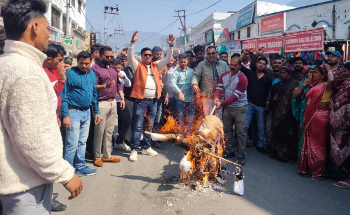 ऋषिकेश ( राव शहजाद ) । चंद्रेश्वर महादेव क्लब ने कांग्रेस विधायक हरीश धामी और लखपत सिंह बुटोला का पुतला दहन किया है । इस दौरान उन्होंने कांग्रेस विधायक के खिलाफ नारेबाजी की और मैदानी जिले में निवास कर रहे लोगों के खिलाफ अभद्र भाषा के प्रयोग पर निंदा प्रस्ताव भी पास किया है । सोमवार को चंदेश्वर महादेव क्लब के लोगों ने देहरादून तिराहे पर पर पुतला दहन किया । यहां कांग्रेस के विधायक हरीश धामी सहित विधायक लखपत सिंह बुटोला पर मैदानी जिलों में निवास कर रहे गैर पर्वतीय समुदाय के लोगों पर अभद टिप्पणी करने पर नाराज की जताई गई। इस दौरान नारेबाजी कर पुतला आग के हवाले किया गया। वही देवदत्त शर्मा ने कहा कि उत्तराखंड में कांग्रेस के विधायकगण अभद्र भाषा का प्रयोग सरेआम और जानबूझकर कर रहे हैं, जबकि उत्तराखंड की संस्कृति ऐसी नहीं है उन्होंने कहा कि दोनों विधायक गणों को सार्वजनिक मंच से माफी मांगनी चाहिए।