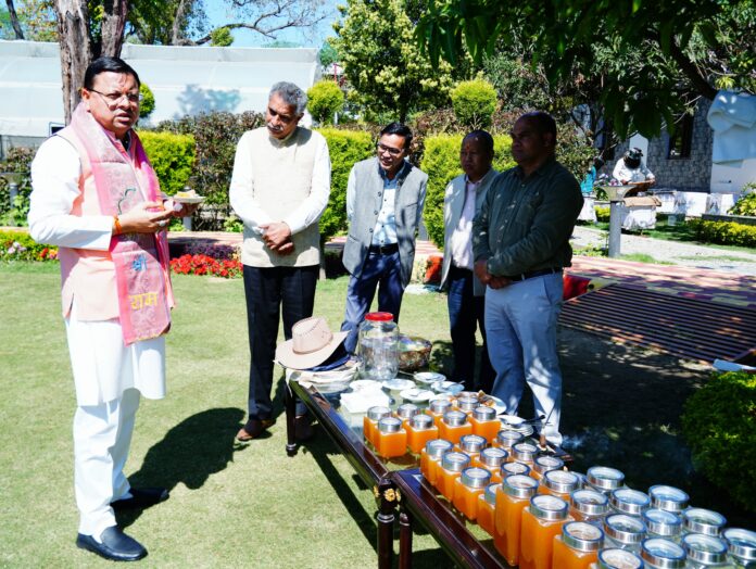 देहरादून (सू0वि0)। मुख्यमंत्री आवास परिसर में मंगलवार को शहद निष्कासन कार्य किया गया। पहले चरण में 57 किलोग्राम शहद निकाला किया गया। इस बार लगभग 200 किलोग्राम तक शहद के निकालने का लक्ष्य रखा गया। मुख्यमंत्री ने बीकीपिंग कार्य को पायलट प्रोजेक्ट के रूप में लेते हुए शहद महोत्सव आयोजित करने के लिए उद्यान विभाग को निर्देश दिये गये। जिसमें मधुमक्खी द्वारा तैयार किए जाने वाले समस्त प्रोडक्ट महोत्सव में रखने और हर वर्ष शहद महोत्सव की एक तिथि भी निर्धारित करने को कहा गया। मुख्यमंत्री ने कहा कि उत्तराखण्ड में मौन पालन की अपार संभावनाएं हैं। उन्होंने कहा कि राज्य में प्रचुर मात्रा में फूलों की प्रजातियां हैं, जो उच्च गुणवत्ता वाले जैविक शहद उत्पादन में सहायक हैं। पहाड़ी क्षेत्रों में औषधीय गुणों वाला शहद तैयार करने के लिए लोगों प्रशिक्षण दिया जाए। मौन पालन को बढ़ावा देने के लिए लोगों को जागरूक किया जाए। इस अवसर पर उद्यान प्रभारी दीपक पुरोहित और चेयरमैन देवभूमि पर्वतीय ग्रामोद्योग विकास संस्थान हरबर्टपुर अजय कुमार सैनी मौजूद थे।