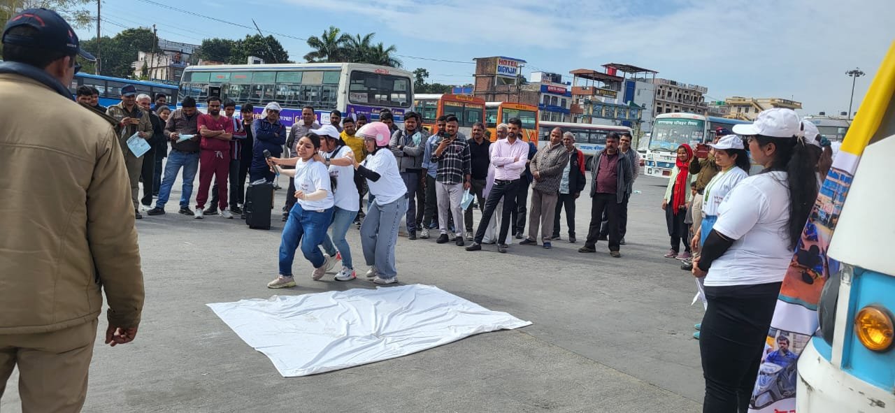 ऋषिकेश ( राव शहजाद ) । परिवहन विभाग ऋषिकेश द्वारा एम्स ऋषिकेश के सहयोग से सड़क सुरक्षा माह के अन्तर्गत नुक्कड नाटक का आयोजन किया गया है । ये नुक्कड़ नाटक एम्स ऋषिकेश, आईएसबीटी ऋषिकेश तथा उप-सम्भागीय परिवहन कार्यालय में किए गए। नाटक के माध्यम से जनता को यातायात नियमों से अवगत कराया गया। लोगो के सड़क पर हेलमेट न पहनने, शराब पीकर वाहन चलाने से क्षति, ओवर स्पीडिंग से होने वाली जन हानि व सड़क पर होने वाली दुर्घटनाओ को रोकने, घायलो की किस प्रकार से सुरक्षित सहायता हो सके आदि दृश्यो को प्रदर्शित किया गया। यह भी बताने की कोशिश कि गयी कि सड़क पर कैसे सुरक्षित चले ओर अन्य को भी कैसे सुरक्षित करे। एक नेक नागरिक(Good samaritan) नियम जिसके अंतर्गत सड़क पर दुर्घटना पीड़ित की मदद करने पर न कोई पुलिस पूछताछ, न कोई परेशानी और साथ ही राज्य सरकार द्वारा पांच हजार व केंद्रीय सरकार द्वारा एक लाख का इनाम से भी लोगो को अवगत कराया गया। नुक्कड़ नाटक के सभी दर्शकों को सड़क सुरक्षा शपथ भी दिलायी गई।