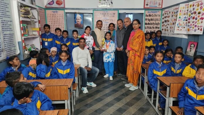 ऋषिकेश । श्री राधे राधे मानव सेवा ट्रस्ट द्वारा राजकीय प्राथमिक विद्यालय सोमेश्वर नगर 12 में खिलाड़ी सम्मान समारोह का आयोजन किया गया कार्यक्रम में मुख्य अतिथि जिला पंचायत सदस्य संजीव चौहान ने शिरकत की है। कार्यक्रम में किकबॉक्सिंग खिलाड़ी मनन डोगरा को 4th वाको इंडिया इंटरनेशनल किकबॉक्सिंग चैंपियनशिप नई दिल्ली में रजत एवं कांस्य पदक हासिल करने पर मुख्य अतिथि जिला पंचायत सदस्य संजीव चौहान,श्री राधे राधे मानव सेवा ट्रस्ट सीमा रानी, रमेश अरोड़ा, उषा जोशी,विद्यालय प्रधानाचार्य राजेंद्र त्यागी जी द्वारा स्मृति चिन्ह भेटकर सम्मानित किया गया। शनिवार को श्री राधे राधे मानव सेवा ट्रस्ट द्वारा राजकीय प्राथमिक विद्यालय सोमेश्वर नगर 12 कार्यक्रम में का आयोजन किया गया जिसमें तीर्थ नगरी के खिलाड़ी मनन डोगरा पुत्र विपिन डोगरा को अंतरराष्ट्रीय स्तर पर देश का परचम लहराने पर सम्मानित किया गया मुख्य अतिथि संजीव चौहान जी ने कार्यक्रम में कहा कि यह हमारे लिए बड़े गौरव की बात है तीर्थ नगरी के खिलाड़ी अंतरराष्ट्रीय स्तर पर देश का परचम लहरा रहे हैं। मौके पर मुख्य अतिथि जिला पंचायत सदस्य संजीव चौहान, राधे राधे मानव सेवा ट्रस्ट सीमा रानी, विपिन डोगरा, रमेश अरोड़ा, शिवानी गुप्ता, विद्यालय प्रधानाचार्य राजेंद्रत्यागी, उषा जोशी सहित अन्य उपस्थित रहे ।