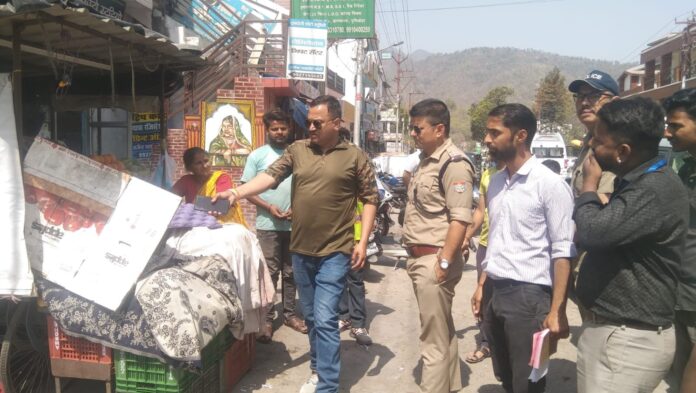 यहां से टीम ने भद्रकाली तिराहे तक मुख्य मार्ग में पसरे अतिक्रमण को हटाया। इस दौरान टीम ने एक दर्जन से अधिक अतिक्रमण सामग्री को जब्त कर खाराश्रोत स्थित अपशिष्ट प्रबंधन केंद्र में भेजा। अभियान में उपनिरीक्षक आशीष शर्मा, प्रदीप रावत, एएसआई आदेश शर्मा, सुपरवाइजर जितेंद्र सिंह सजवाण, सफाई सुपरवाइजर बाबू सिंह, समर सेमवाल, गोविंद जगूड़ी, सौरभ पांडे, ज्योति पसपोला, सुभाष, वीरू कैंतुरा सहित अन्य मौजूद थे।