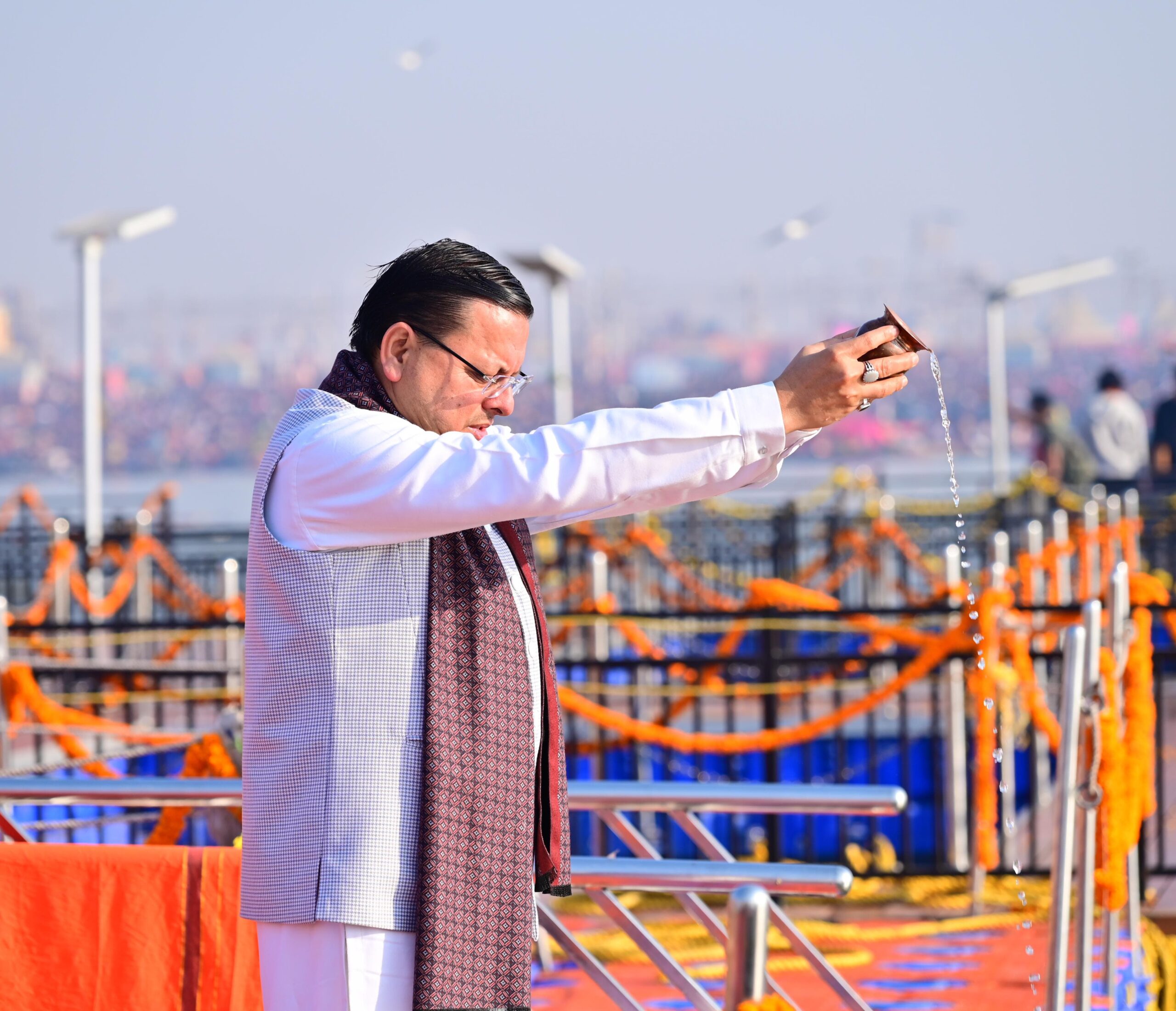 देहरादून (सू0वि0)। मुख्यमंत्री पुष्कर सिंह धामी ने सोमवार को महाकुंभ 2025 के पुण्य अवसर पर पावन दिव्य त्रिवेणी संगम पर सपरिवार स्नान किया। उन्होंने पतित पावनी मां गंगा, यमुना और सरस्वती के पूजन के साथ सभी देवों का आह्वाहन कर प्रदेशवासियों की सुख समृद्धि तथा प्रदेश की उन्नति के लिए प्रार्थना की। मुख्यमंत्री ने कहा कि महाकुंभ शताब्दियों से अपनी अक्षुणता बनाये रखते हुए सनातन धर्म की आध्यात्मिक और सांस्कृतिक महत्ता के माध्यम से करोड़ों लोगों को धर्म एवं संस्कृति से जोड़ता रहा है। महाकुंभ का पर्व केवल आध्यात्मिक चेतना का ही नहीं, बल्कि राष्ट्रीय एकता, अखण्डता और विश्व बंधुत्व का प्रतीक है। विश्व का यह महान पर्व सदियों से मानवता, समरसता तथा नैतिक मूल्यों की प्रेरणा देकर विश्व कल्याण का मार्ग प्रशस्त करता रहा है। मुख्यमंत्री ने प्रयागराज महाकुंभ में अपनी पूज्य माताजी को स्नान कराना अपने जीवन का अमूल्य एवं भावुक क्षण बताते हुए कहा कि वेदों, शास्त्रों और पुराणों में उल्लिखित है कि कोई भी जीव अपनी माता के ऋण से उऋण नहीं हो सकता। माता से ही हमारा अस्तित्व जुड़ा है। मुख्यमंत्री ने कहा कि इस दिव्य अवसर पर उन्हें यह भी अनुभूति हुई है कि मां केवल जन्मदात्री ही नहीं बल्कि सजीव तीर्थ के समान है। उनकी सेवा और सम्मान से जीवन में सभी पुण्य फलीभूत होते हैं। उन्होंने कहा कि यह भावपूर्ण क्षण उनके लिए सनातन संस्कृति परंपरा और मातृ भक्ति का सजीव स्वरूप प्रस्तुत करने वाला है।