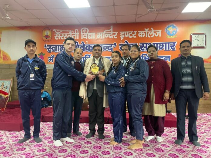 ऋषिकेश। सरस्वती विद्या मंदिर इंटर कॉलेज आवास विकास ऋषिकेश में एक सम्मान कार्यक्रम का आयोजन किया गया है ।जिसके अंतर्गत भौतिक विज्ञान विषय के परीक्षक के रूप में इण्टरमीडिएट के छात्र छात्राओं की प्रयोगात्मक परीक्षा लेने आए भौतिक विज्ञान प्रवक्ता परीक्षक डॉ.संजय ध्यानी राजकीय इण्टर कॉलेज टिमली,नरेंद्रनगर टिहरी गढ़वाल व प्रभारी प्रधानाचार्य का विद्यालय के प्रधानाचार्य उमाकांत पंत एवं विद्यालय परिवार ने संयुक्त रूप से शॉल ओढ़कर व स्मृति चिन्ह देकर उनका अभिवादन किया । कार्यक्रम में डॉ.संजय ने भौतिक विज्ञान के छात्र छात्राओं को बताया कि कैसे प्रश्नपत्र को हल करना चाहिए व परीक्षा से संबंधित महत्वपूर्ण टिप्स भी दिए । साथ ही कहां की आप विश्व के सबसे बड़े शैक्षिक संगठन में पढ़ रहे हैं ,आप सभी सौभाग्यशाली है व भविष्य में आप हर क्षेत्र में विद्या मंदिर की पहचान बनाएंगे ऐसा सभी का आपसे विश्वास है। विद्यालय प्रधानाचार्य उमाकांत पंत ने बताया कि हमारे विद्यालय में आप अतिथि देवों भव: है ,आपके द्वारा दिए गए दिशा निर्देशों को छात्र छात्राये अवश्य ही आत्मसात करेंगे जिससे वह भावी बोर्ड परीक्षा में उत्कृष्ट प्रदर्शन कर सके। मौके पर वीरेन्द्र कंसवाल,रीना गुप्ता, कर्णपाल बिष्ट,रामगोपाल रतूड़ी,जितेन्द्र यादव, सतीश चौहान, योगेश देवली,आयुष रावत ,आशना सकलानी ,तनुज राणा सहित अन्य मौजूद रहे ।