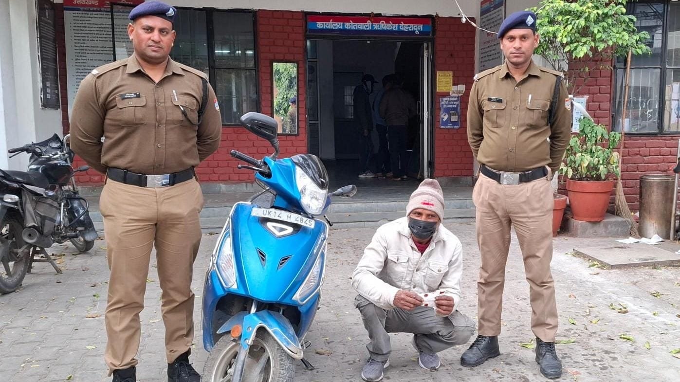 ऋषिकेश । ऋषिकेश पुलिस द्वारा नशे के खिलाफ चलाए जा रहे सघन चेकिंग अभियान के तहत एक तस्कर को 7.70 ग्राम अवैध स्मैक के साथ गिरफ्तार किया तथा तस्वीर में प्रयुक्त स्कूटी को सीज किया है। सोमवार को ऋषिकेश कोतवाली प्रभारी निरीक्षक के नेतृत्व में गठित टीम ने गोल चक्कर फायर सर्विस रोड आईडीपीएल में अवैध नशे के खिलाफ चलाए जा रहे सघन चेकिंग के तहत अनिल नाथ 42 वर्ष पुत्र अमरनाथ निवासी सर्वहारानगर काले की ढाल ऋषिकेश को 7.70 ग्राम स्मैक के साथ गिरफ्तार कर तस्करी में प्रयुक्त स्कूटी संख्या UK14H-4845 को सीज किया गिरफ्तार किया गया। पुलिस ने अभियुक्त को न्यायालय में पेश करने के बाद जेल भेज दिया। पुलिस टीम में उनि कविन्द्र राणा, हेड कांस्टेबल विनोद कुमार, कांस्टेबल सुमित कुमार , अनिल पयाल शामिल थे ।