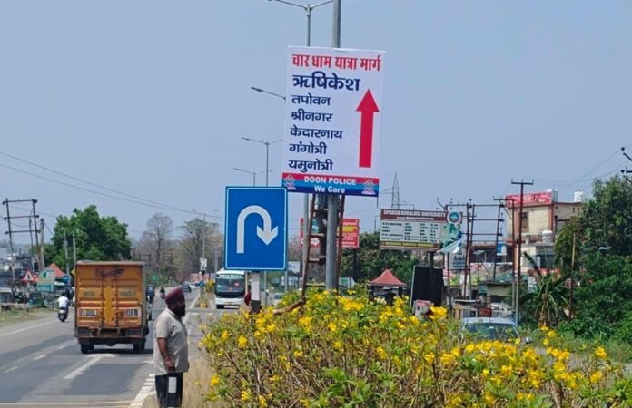 देहरादून ( राव शहजाद ) । आगामी चारधाम यात्रा , पर्यटक सीजन के दृष्टिगत बाहरी राज्यों से आने वाले श्रद्धालुओं की सुविधा तथा चारधाम मार्गो की जानकारी प्रदान करने हेतु वरिष्ठ पुलिस अधीक्षक देहरादून अजय सिंह द्वारा चार धाम यात्रा रूट पर सूचना संबंधित फ्लेक्स बोर्ड लगाने हेतु संबंधित थाना प्रभारियों को निर्देशित किया गया है। बता दे एसएसपी देहरादून द्वारा सभी अधिकारियों को चार धाम यात्रा से पूर्व सभी आवश्यक व्यवस्थाएं समय से पूर्ण करने के निर्देश दिए है । उक्त निर्देशो के क्रम में पुलिस द्वारा डोईवाला तथा ऋषिकेश क्षेत्रान्तर्गत मुख्य स्थानों पर मार्गों के विवरण/भू स्खलन क्षेत्र/मार्गों के पूर्ण विवरण से संबंधित साइन बोर्ड लगाये गये।