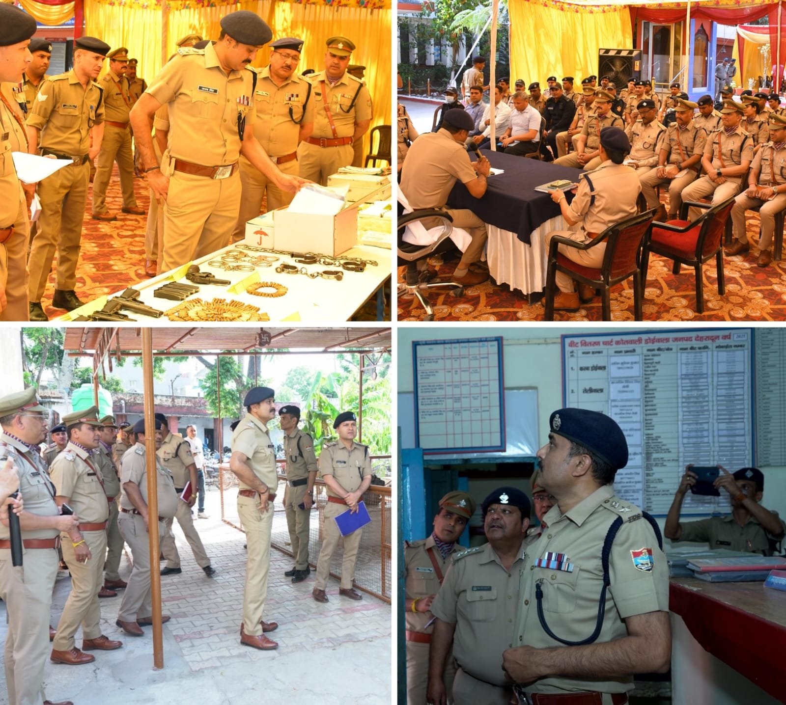 थानों पर उपलब्ध असलहों, दंगा नियत्रण उपकरणो तथा आपदा उपकरणों के निरीक्षण के दौरान एसएसपी देहरादून द्वारा पुलिस कर्मियों को नियमित रूप से वैपन हैण्डलिंग का अभ्यास करवाने तथा थाने में मौजूद क्राइम डिटेक्शन किट के सम्बन्ध में उपस्थित अधिकारियों से जानकारी प्राप्त कर सभी अधिकारियों/कर्मचारियों को क्राइम डिटेक्शन किट की जानकारी देते हुए क्राइम सीन से साक्ष्यों को संकलित करने का नियमित रूप से अभ्यास करवाने के निर्देश दिए गए। निरीक्षण के उपरान्त एसएसपी देहरादून द्वारा थानो में उपस्थित समस्त अधिकारी/कर्मचारियों की मीटिंग ली गई, जिसमें अपराध नियंत्रण/रोकथाम, विवेचना/शिकायती प्रार्थना पत्रों तथा माननीय न्यायालय से प्राप्त होने वाले पत्रों के शीघ्र व समयबद्ध विधिक निस्तारण के निर्देश दिये गये। इस दौरान उपस्थित अधिकारियों/कर्मचारियों से उनकी समस्याओं के समबन्ध में जानकारी प्राप्त करते हुए उनके निस्तारण हेतु उपस्थित अधिकारियों को निर्देशित किया गया। मौके पर एसपी देहात जया बलूनी सहित प्रभारी निरीक्षक , उपनिरीक्षक मौजदू रहे।