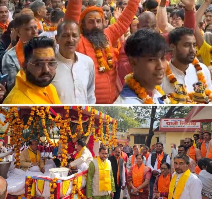 ऋषिकेश ( राव शहजाद ) । श्री 108 बाबा काली कमली वाले स्वामी आत्मप्रकाश स्वर्गाश्रम ट्रस्ट का 96वां ब्रह्मनिर्वाणोत्सव धूमधाम से मनाया गया है । बता दे मंगलवार को काली कमली गद्दी शोभायात्रा गीताभवन, परमार्थ आश्रम, वानप्रस्थ, भूतनाथ मंदिर होकर से निकाली गई जो प्राचीन गद्दी स्थल पर संपन्न हुई है । इस अवसर पर बैंडबाजों के साथ निकली शोभायात्रा का क्षेत्रवासियों ने पुष्पवर्षा कर स्वागत किया। विभिन्न स्थानों पर व्यापारियों ने लोगों को पानी और प्रसाद वितरित किया।