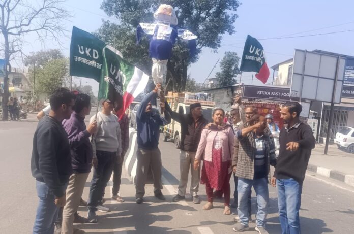 यूकेडी कार्यकर्ताओं ने किया पुतला दहन